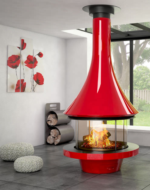 Zelia 908 شومینه ای گرد است که از سقف آویزان می شود ودروسط فضای اتاق قرار می گیرد تا زیبایی آن به خوبی مشاهده شود .عناصر تشکیل دهنده آن فلز وشیشه هستند و سوخت اصلی آن چوب است .