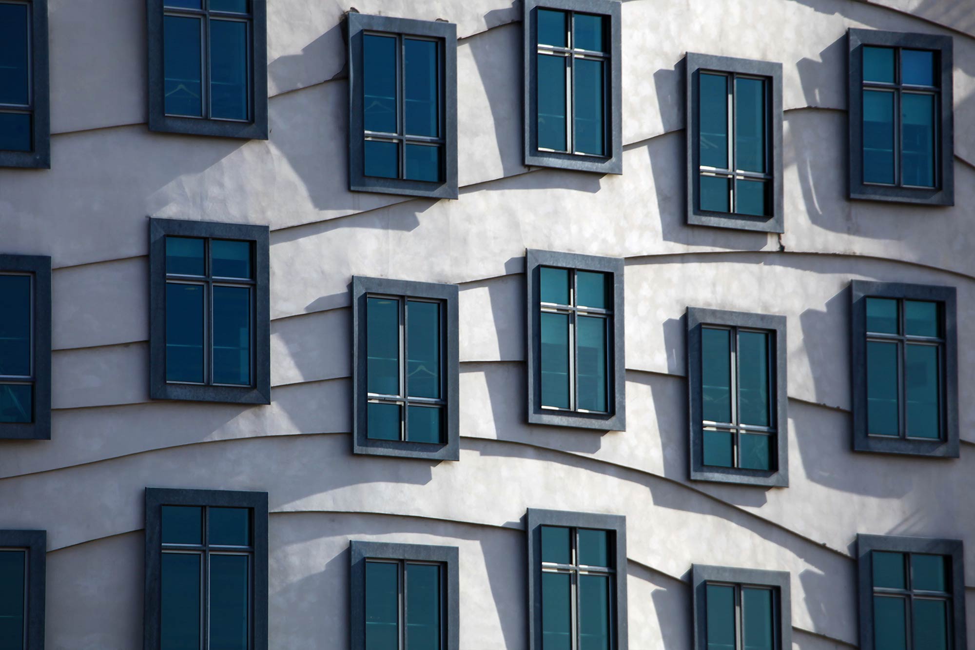به همین خاطر طراح ، پنجره های قسمت دایروی آن را با متقارن نساختنشان و همچنین ایجاد فرم موجی در بدنه ساختمان متناسب ساختمان شیشه ای رقصان کرده است.