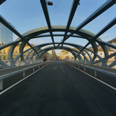 این پل، مفهوم پل سنتی خرپایی را از نو تفسیر نموده است . سازه دارای یک پروفیل طولی است که شامل یک قوس خفیف به دهانه 85.5 متر بدون پایه های متوسط می شود . شکل آن نتیجه یک تحقیق معماری و سازه ای طولانی است که در تلاش برای پیدا کردن یک ساخت و ساز موثر عقلانی و کم هزینه است؛ البته صرفنظر از شبکه رندوم ظاهر آن .
