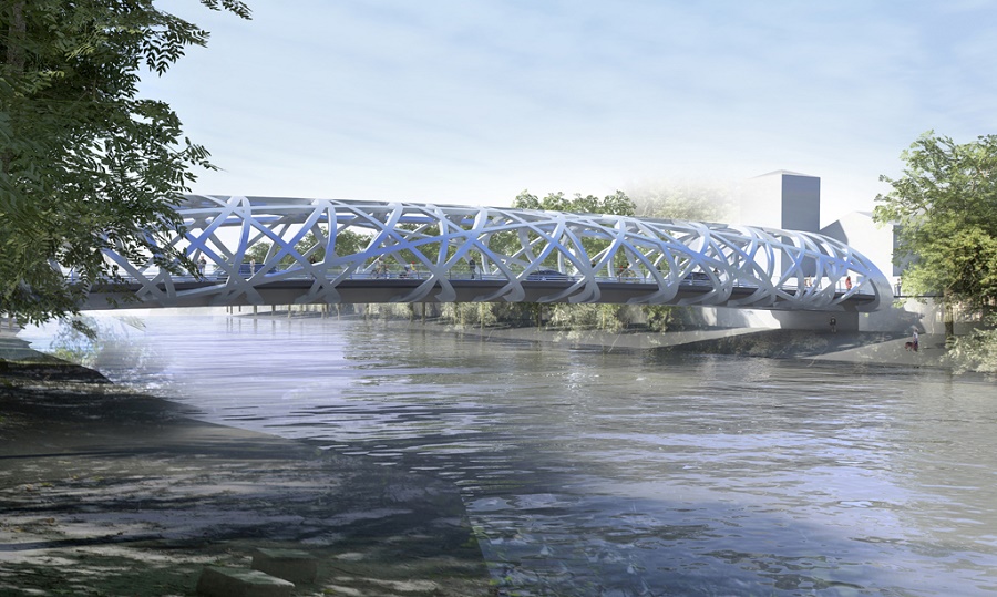 به گزارش معماری نیوز، بین دو سر پل ،دو نوع حلقه بیضی شکل به طور متقارن در تمام طول ساختار طراحی شده است. بیش از 250 پارامتر قطعه به منظور اطمینان یافتن از انطباق دقیق با هندسه سازه به یک برنامه کامپیوتری وارد شده اند .