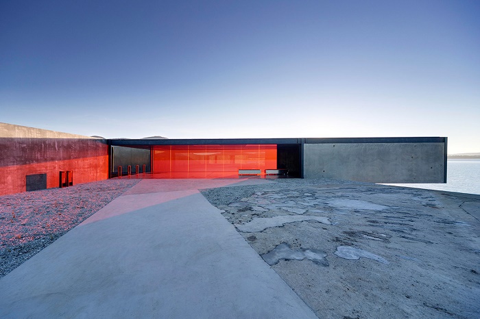 سازه اصلی خانه GASP در قالب مکعب مستطیل طراحی شده که انتهای این تونل به سواحل زیبای تاسمانیا ختم می شود . نمای خروجی ساختمان را ورقه های مسطح شیشه ای پوشانده که انعکاس آب های اطراف را در خود به نمایش در می آورد . زمانی که خورشید در حال غروب کردن است . رنگین کمانی از رنگ های تیره و روشن در شیشه تمام نمای ساختمان نمایان می شود و یک خواب رویایی را به واقعیت تبدیل می کند .