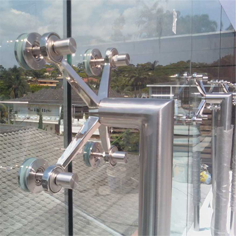 اتصالات و بستهای اسپایدر که تمام استیل میباشد و به صورت چنگکی دارای اتصالی به شیشه است.
